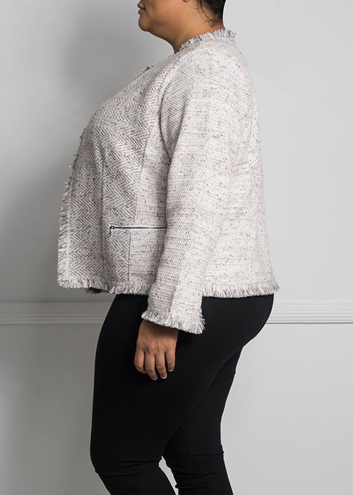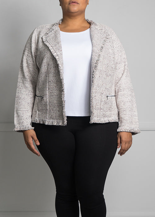 For the love of fringe! This blazer is made to have all the sophistication of a tweed jacket, but with none of the discomfort. The zipper pockets give it just the perfect amount of bling while the forgiving weave provide comfort and ease throughout the day. Made with a combination of cotton and spandex, this Nic + Zoe creation with give, will be sure to get you compliments all day long. Wear this layered over a dress, slacks or jeans. The colors of this jacket make it versatile enough to go with almost anything already in your closet.