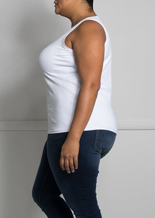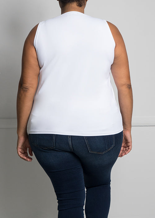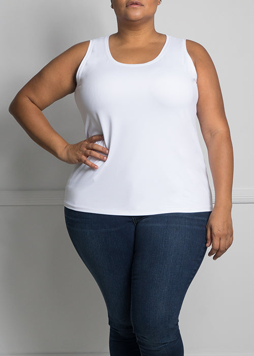 This super soft tank is sophisticated enough for work, but casual enough for play! This tank can be layered underneath your outfit each and every day and the soft fabric will feel divine against your skin. Goes beautifully with any cardi or blazer, but we especially love it with the Nic + Zoe Soft Line Moto Cardi for work or leisure. Also available in cream and black.