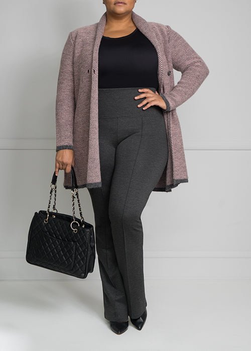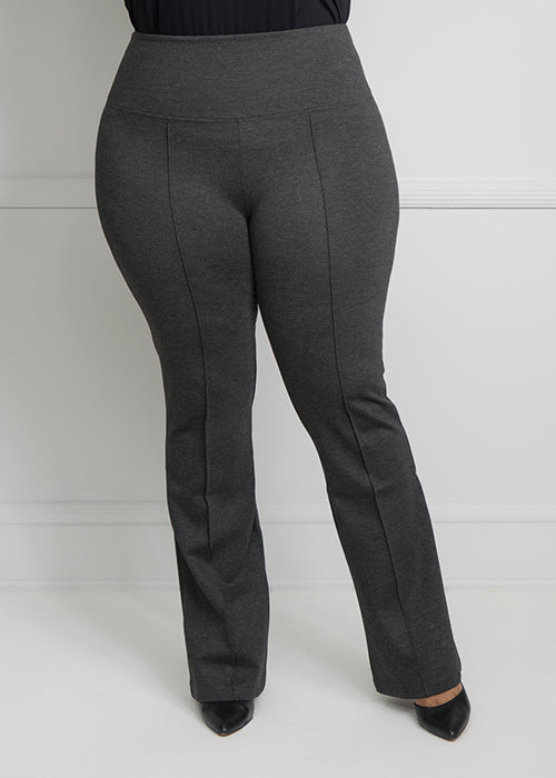 Made with elongating front seam detailing, these ponte pants will be your go to for comfort during the day or night. The soft stretch waistband gives a secure and controlled fit made for comfortable shaping for a woman on the move. These slacks are fitted and on the longer side; and extremely flattering cut for most. Perfect for the office, when paired with a fitted tank, relaxed fit jacket and heels.